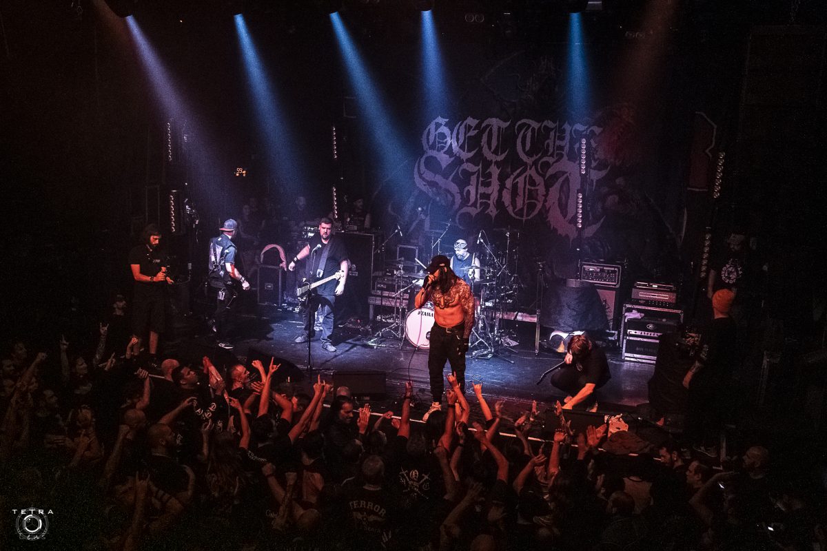 Après cette sympathique introduction, on assiste à un échauffement collectif : flexions, étirements des épaules, rotation des cervicales, ça va mosher sévère. La salle est déjà bien dense et la température monte d’un cran, mais la déferlante québécoise Get The Shot va transformer le lieu en hammam.