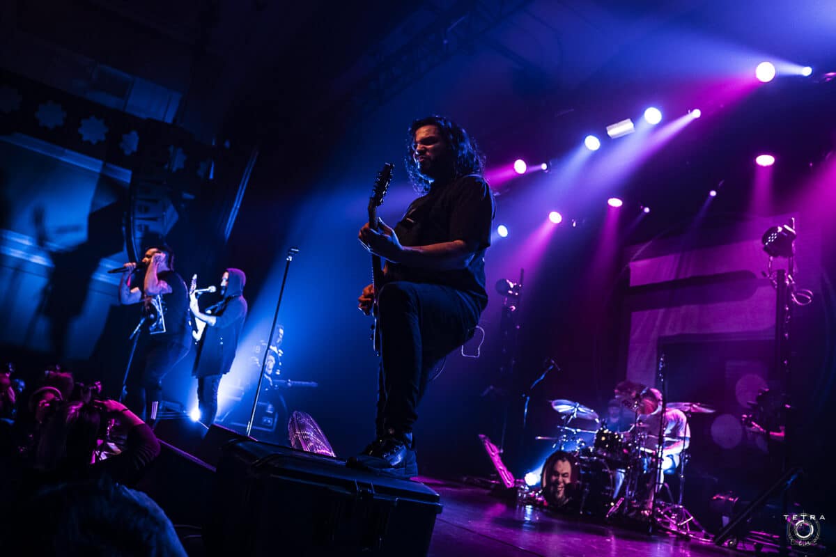 Le collectif du Maryland qui distille ses leçons de prog depuis 2005, nous régale d’un démarrage par Dracul Gras, titre de plus de 12 minutes issu du dernier opus, Periphery V: Djent is Not a Genre (sorti en 2023), dont la progression illustre avec précision le propos même de la thématique vampirique. L’ambiance à la fois sombre, étourdissante, la frayeur, l’inconnu, puis le calme, dont la composition savamment déstructurée et les chutes de demi-ton sont la bande-son parfaite de la sensation de se vider de sa substance. Un décor sonore tout aussi onirique qu’inquiétant, qui se transforme en ballade grâce à une performance vocale de haut vol et à un solo de guitare emphatique. Ce titre est une histoire à lui seul, se clôturant sur un synthétiseur aérien avec une touche eighties qu’on voit comme l’image de la liberté de l’âme qui s’étiole dans le temps et l’espace.