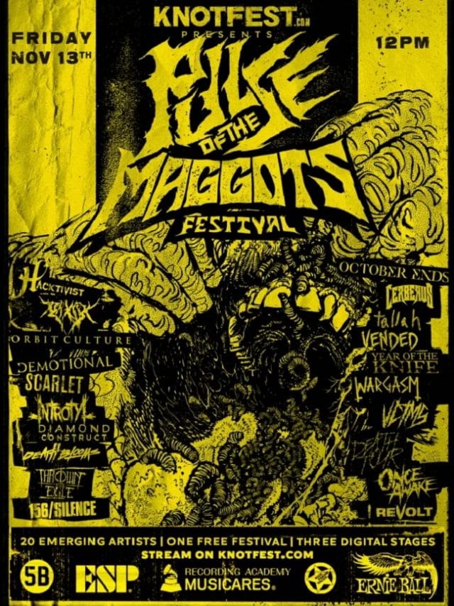 Pulse Of The Maggots est la marque de Knotfest.com dédiée à la mise en avant des artistes émergents qui apportent créativité, originalité et enthousiasme à la communauté Metal en pleine croissance. Le festival éponyme sera diffusé en streaming sur Knotfest.com. À partir d’aujourd’hui, Knotfest.com mettra en lumière chaque artiste. Certains seront présentés dans le concert phare de Knotfest.com, Mosh Talks With Beez. Le coup d’envoi du Pulse Of The Maggots Fest sera donné le vendredi 13 novembre à 21h.
