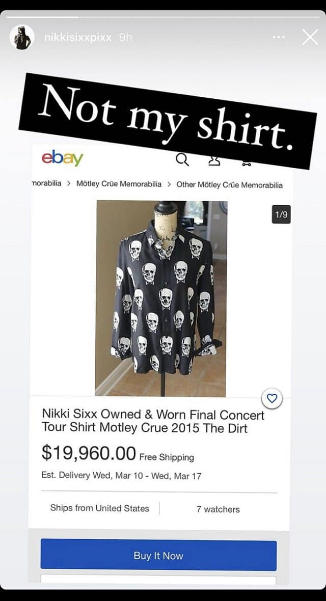 Nikki Sixx s’est rendu sur Instagram pour avertir ses fans qu’une chemise récemment mise en vente sur eBay n’était pas la sienne.
