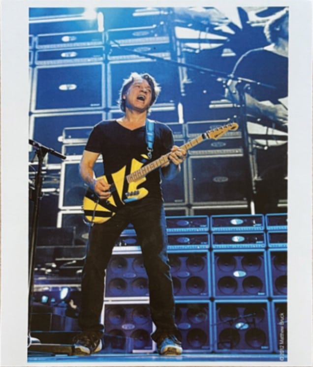 Eddie a joué avec cette guitare lors d’un concert de Van Halen au Tacoma Dome, à Washington, le 5 mai 2012, dans le cadre de la tournée A Different Kind Of Truth. De plus, Eddie Van Halen a certifié l’utilisation de la guitare avec une signature au feutre argenté et une inscription sur le corps qui indique : “Tacoma WA 5-5-2012, Eddie Van Halen, VH 2012”.