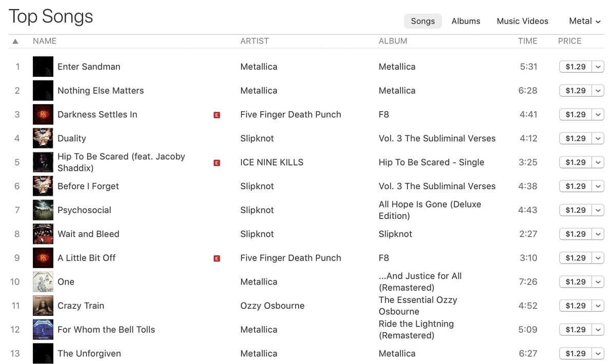 Duality (le titre est disponible ci-dessous) se trouve actuellement à la quatrième place du classement, tandis que Before I Forget, Psychosocial et Wait And Bleed atteignent respectivement les sixième, septième et huitième places. Le premier album éponyme de Slipknot est numéro 4 dans le classement des meilleurs albums de Metal, tandis que Iowa est numéro 5, All Hope Is Gone est numéro 7 et Vol. 3 : The Subliminal Verses est numéro 8. Chaque chanson et album du Top 10 inclut Joey Jordison !