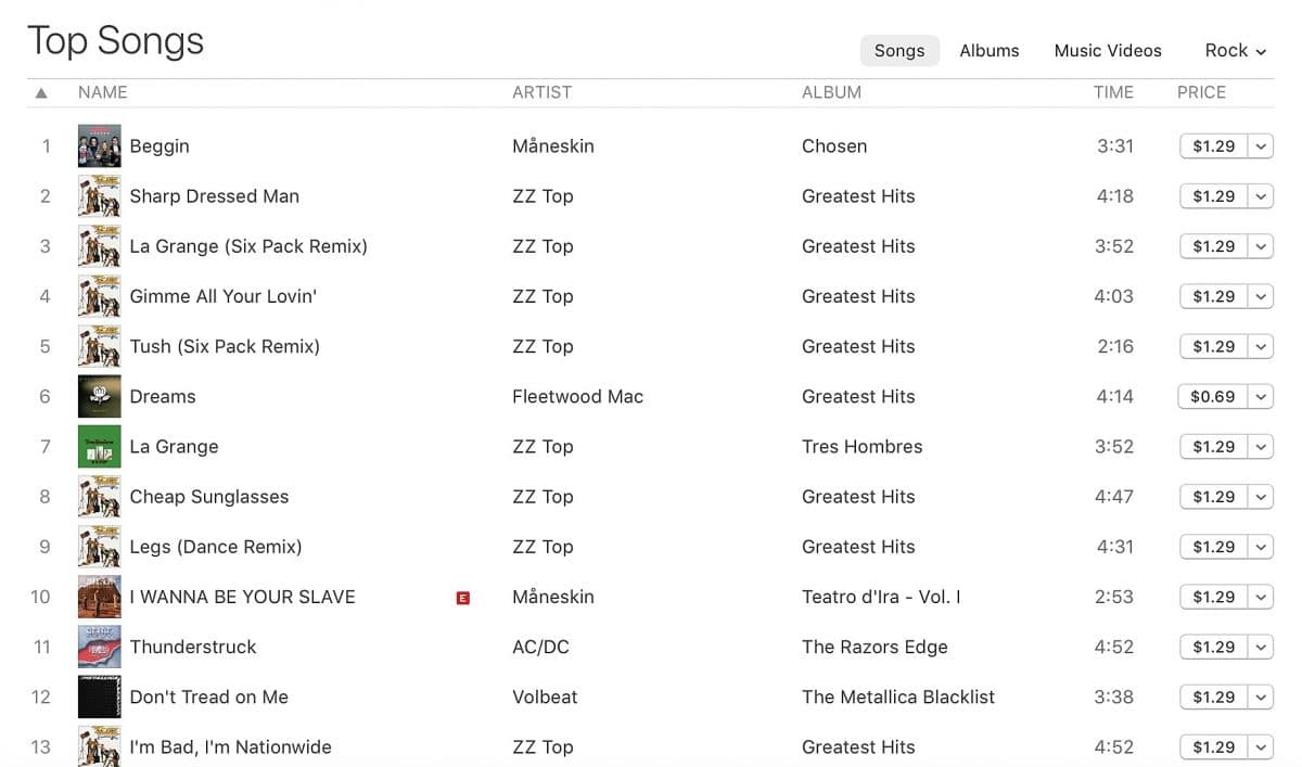 La réascension de ZZ Top dans les charts est encore plus impressionante. La musique du groupe emblématique occupe actuellement sept places dans le classement des meilleures chansons Rock, avec Sharp Dressed Man (le titre est disponible ci-dessous) à la deuxième place. Deux versions de The Barn sont également entrées dans le Top 10. En ce qui concerne les albums de ZZ Top, la compilation Greatest Hits du groupe est à la cinquième place du classement des meilleurs albums de Rock et le classique Tres Hombres est à la neuvième place.