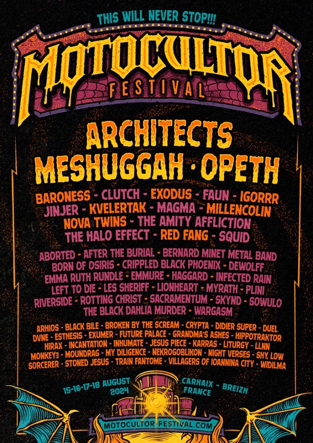 Parmi les têtes d’affiche déjà confirmées, on retrouve des noms majeurs tels que Architects, Meshuggah, Opeth ou encore Jinjer, promettant une expérience musicale épique pour les amateurs de rock et de metal.