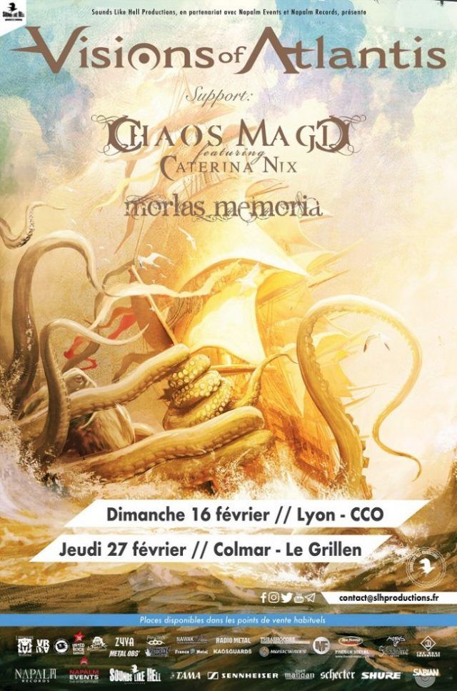 Lors de ces deux concerts, Visions Of Atlantis sera accompagné par Chaos Magic et Morlas Memoria. Le groupe représenté par le duo vocal Clémentine Delauney et Michele Guaitoli défendra son nouvel album Wanderers, sorti le 30 août 2019 via Napalm Records !