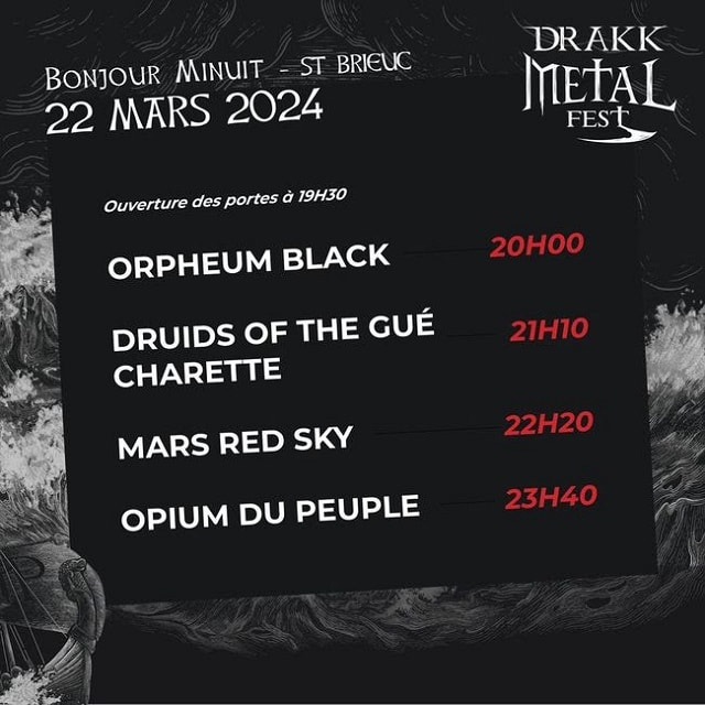 L’équipe du Drakk Metal Fest (DMF) dévoile l’ordre de passage du festival de cette année. Avec des groupes aussi puissants que Black Bomb A, Misanthrope et Opium Du Peuple à l’affiche, les amateurs de metal s’apprêtent à vivre une expérience qui restera gravée dans les mémoires.